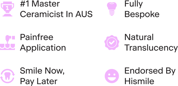 Our veneers are tailor-made, based on CADCAM 3D scans of your face. Australia’s #1 master ceramist meticulously hand-layers each veneer, giving them a natural translucent look. This also makes them thinner and stronger, so we only prepare as little as 0.3mm from your teeth to apply them (instead of 1-2mm on standard veneers!).